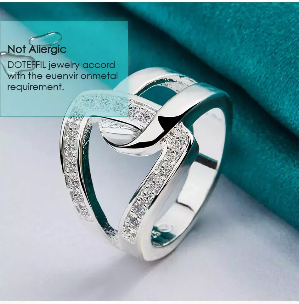 💎 Anel Geométrico Unissex com Zircão – Prata Esterlina 925 | Sofisticação Moderna para Todas as Ocasiões