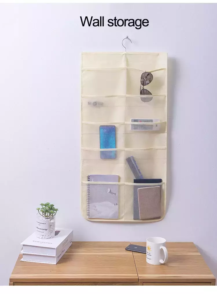 Pendurado na parede, atrás da porta, abrindo um novo espaço de armazenamento
