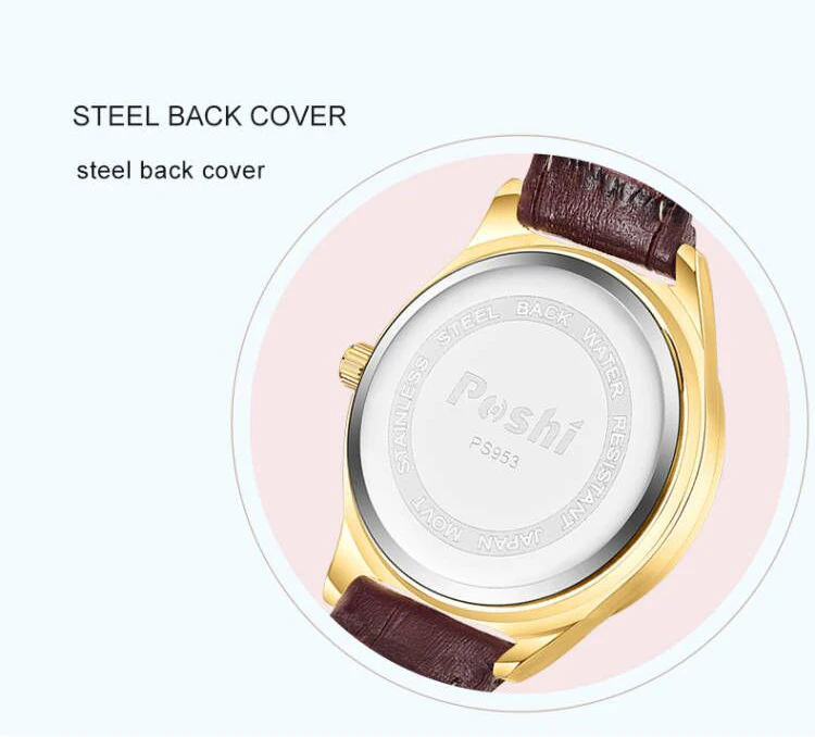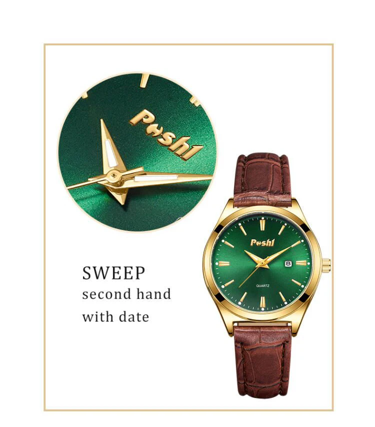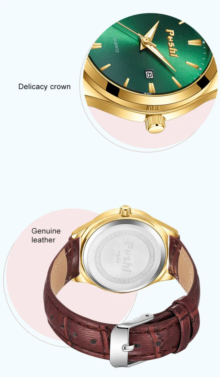 POSHI – Relógio Feminino de Luxo com Pulseira de Couro