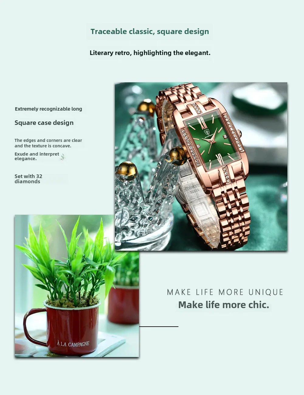 • Qualidade Suíça:Fabricado com qualidade suíça superior, este relógio feminino garante durabilidade e precisão.É uma prova do renomado artesanato suíço.