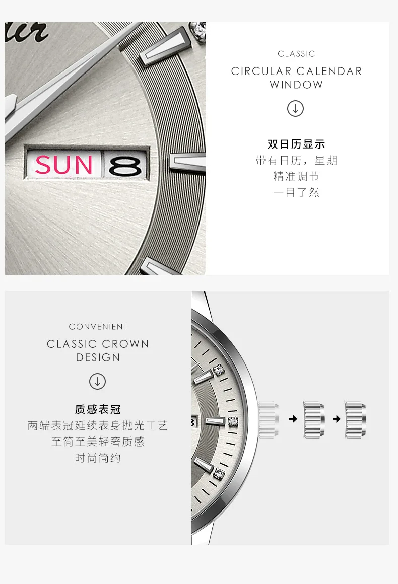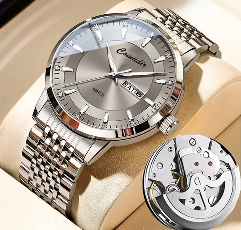 • Movimento Automático:Este relógio masculino possui um movimento totalmente automático, garantindo cronometragem precisa sem a necessidade de baterias.