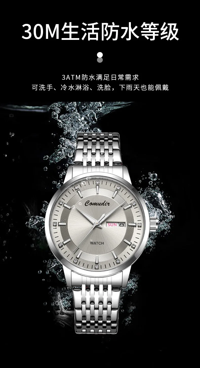 • Design à prova d'água:Com seu design à prova d'água, este relógio resiste a respingos e chuva fraca, tornando-o perfeito para uso diário.